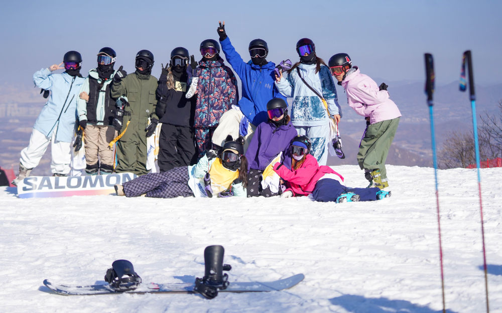 2025年11月22日,滑雪爱好者在吉林省吉林市中旅松花湖度假区合影留念。新华社记者 颜麟蕴 摄